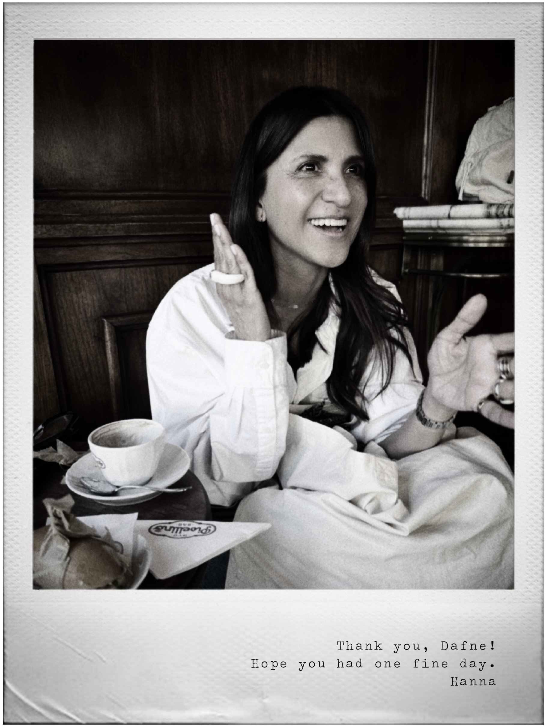“Thanks to DAFNE, who walked with me around the city—we spent a lovely day together.”